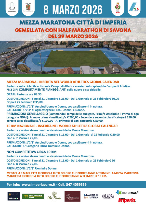 MEZZA MARATONA CITTA' DI IMPERIA 8 MARZO 2026