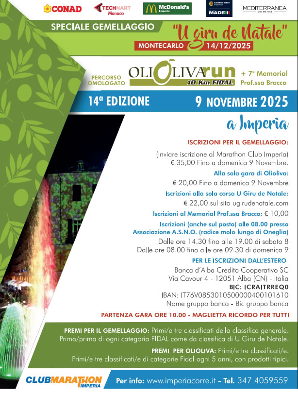 Corsa di 10 km sul mare, tra cucina mediterranea e festa dell'olio nuovo.